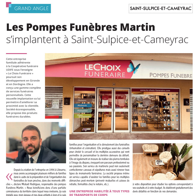 POMPES FUNÈBRES MARTIN SAINT SULPICE ET CAMEYRAC